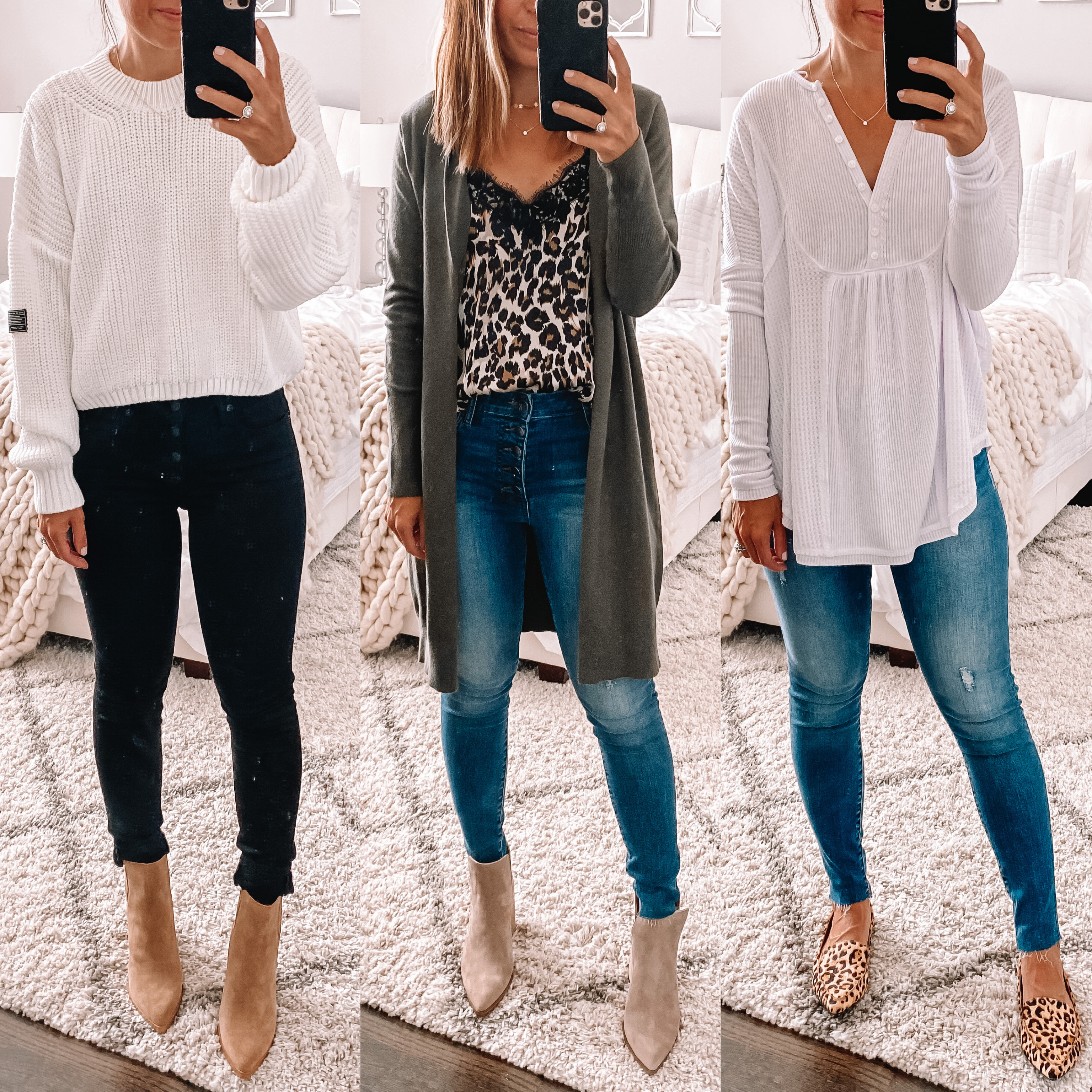 1 - Barefoot Dream Leopard Cardigan | 2 - Colorblock Wubby Fleece | 3 - Barefoot Dream Leopard Throw (Dupe HERE)| 4 - Leopard Adidas Swift Run | 5 - Steve Madden Leopard Mules